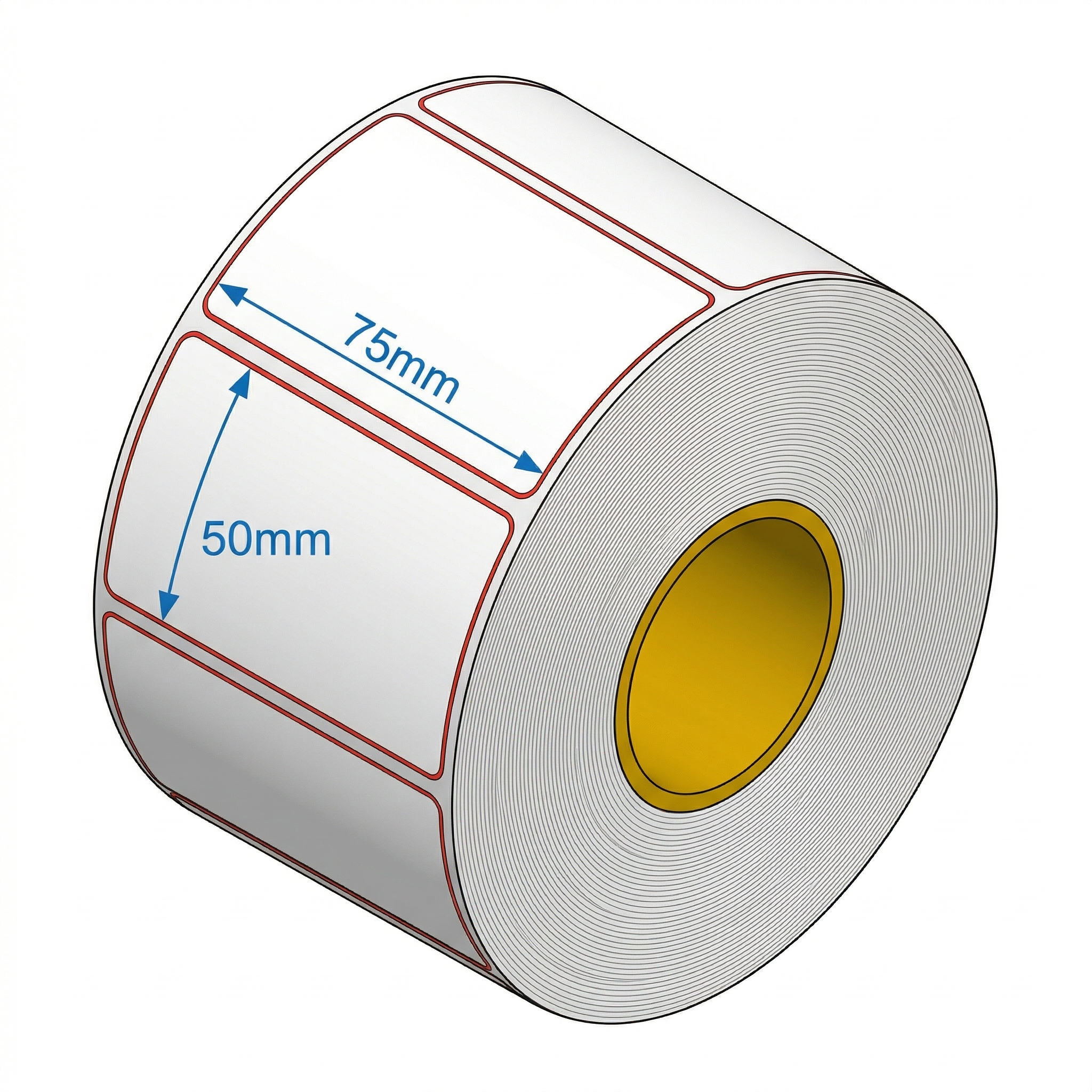 75x50mm là điểm cân bằng tốt giữa diện tích in và số tem/cuộn — đủ thông tin mà không tốn quá nhiều giấy mỗi tem.